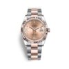 Rolex Datejust 126231-0020 sở hữu ngoại hình tinh tế, pha trộn bởi 2 chất liệu vàng hồng 18k và thép không gỉ 904L độc quyền Rolex mang lại khả năng chống va đập và trầy xước tốt nhất. Bộ vỏ của chiếc đồng hồ được làm hoàn toàn từ thép không gỉ 904L được đánh bóng tỉ mỉ kết hợp cùng vành bezel khía được làm từ vàng Everose có khả năng tương phản cực tốt thu hút mọi ánh nhìn cho mặt số. Với phiên bản này nhà sản xuất đã trang bị cho chiếc đồng hồ bộ dây Oyster 3 mối nối mềm mại và có tính thẩm mỹ cao, với mắt dây ở giữa được làm từ vàng Everose được đánh bóng tỉ mỉ, 2 mắt dây ngoài cùng làm từ thép không gỉ 904L. Bên cạnh bộ vỏ thì mặt số của đồng hồ xuất hiện với màu đen đơn giản được hoàn thiện tinh tế bằng phương pháp chải tia kết hợp cùng bộ kim chỉ giờ dáng baton với những cọc số kim cương thanh lịch, sang trọng. Một ống kính phóng đại cyclops được mở tại vị trí 3 cũng mang đến những hiệu quả vượt trội trong việc nhận biết lịch ngày.