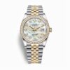 Rolex Datejust 126234 là một phiên bản đồng hồ thanh lịch mà vẫn đầy sang trọng nằm trong bộ sưu tập Datejust trứ danh, được hoàn thiện từ hai chất liệu là vàng trắng 18k và thép không gỉ 904L độc quyền của Rolex. Bộ vỏ Oyster của chiếc đồng hồ được hoàn toàn từ thép không gỉ 904L và trang bị núm điều chỉnh có hệ thống chống thấm nước hai tầng Twinlock trong tone màu bạc sáng bóng, đem lại khả năng chống nước lên tới 100m. Kết hợp cùng vành bezel khía được làm từ vàng vàng 18k có khả năng tương phản cực tốt bao quanh bảo vệ mặt số cùng mặt kính sapphire gần như miễn nhiễm với các tác động gây trầy xước từ bên ngoài.