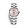 Rolex Datejust 278274 – Xuất hiện trong bộ vỏ Rolesor sang trọng, hiện đại được làm từ 2 chất liệu là vàng trắng 18k và thép không gỉ 904L độc quyền của thương hiệu Rolex, với kích thước 31mm vô cùng phù hợp với các quý cô văn phòng thời thượng và khí chất. Bên cạnh bộ vỏ, phiên bản được trang bị vành bezel khía đặc trưng làm từ vàng trắng 18k có khả năng tương phản tốt tạo điểm nhấn thú vị trên cổ tay của các quý cô, kết hợp núm điều chỉnh có hệ thống chống thấm nước hai tầng Twinlock mang tới khả năng chống nước ở mức 100m cực kỳ ấn tượng.