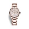 Rolex Datejust 278278 – Xuất hiện trong bộ vỏ được làm hoàn toàn từ vàng vàng 18k nguyên khối độc quyền của thương hiệu Rolex, với kích thước 31mm vô cùng phù hợp với các quý cô văn phòng thời thượng và khí chất. Bên cạnh bộ vỏ, phiên bản được trang bị vành bezel khía đặc trưng làm từ vàng vàng 18k có khả năng tương phản tốt tạo điểm nhấn thú vị trên cổ tay của các quý cô, kết hợp núm điều chỉnh có hệ thống chống thấm nước hai tầng Twinlock mang tới khả năng chống nước ở mức 100m cực kỳ ấn tượng.