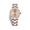 Rolex Datejust 278285RBR – Xuất hiện trong bộ vỏ được làm hoàn toàn từ vàng Everose 18k nguyên khối độc quyền của thương hiệu Rolex, với kích thước 31mm vô cùng phù hợp với các quý cô văn phòng thời thượng và khí chất. Bên cạnh bộ vỏ, phiên bản được trang bị vành bezel được làm từ vàng Everose 18k được phủ kín bằng kim cương lấp lánh tạo điểm nhấn thú vị trên cổ tay của các quý cô, kết hợp núm điều chỉnh có hệ thống chống thấm nước hai tầng Twinlock mang tới khả năng chống nước ở mức 100m cực kỳ ấn tượng.