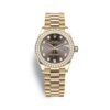 Rolex Datejust 278288RBR – Xuất hiện trong bộ vỏ được làm hoàn toàn từ vàng vàng 18k nguyên khối độc quyền của thương hiệu Rolex, với kích thước 31mm vô cùng phù hợp với các quý cô văn phòng thời thượng và khí chất. Bên cạnh bộ vỏ, phiên bản được trang bị vành bezel được làm từ vàng vàng 18k được phủ kín bằng kim cương lấp lánh tạo điểm nhấn thú vị trên cổ tay của các quý cô, kết hợp núm điều chỉnh có hệ thống chống thấm nước hai tầng Twinlock mang tới khả năng chống nước ở mức 100m cực kỳ ấn tượng.