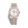 Phiên bản Rolex Datejust 278383RBR-0028 đã được Rolex sử dụng mặt số khảm trai hoàn thiện tinh tế với mỗi đường vân màu đều độc nhất, pha lẫn giữa chất hiện đại và nét cổ điển vốn có của thương hiệu. Trên nền mặt số vẫn là bộ kim chỉ giờ dáng baton với những cọc số kim cương, riêng tại vị trí góc 3 giờ vẫn là ô cửa sổ chỉ báo lịch ngày được hỗ trợ qua ống kính cyclops. Cùng với đó, phiên bản sử dụng dây đeo Jubilee 5 mối nối mềm mại và có tính thẩm mỹ cao được làm từ chất liệu vàng vàng nguyên khối 18k và thép không gỉ 904L.