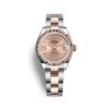 Rolex Datejust 279381RBR – Xuất hiện trong bộ vỏ Rolesor sang trọng, hiện đại được làm từ 2 chất liệu là vàng Everose 18k và thép không gỉ 904L độc quyền của thương hiệu Rolex, với kích thước 28mm vô cùng phù hợp với cổ tay của các quý cô hiện đại, tuy sở hữu kích thước khiêm tốn nhưng vẫn là một món phụ kiện không thể thiếu bên cạnh những bộ cánh sang trọng của các quý cô. Bên cạnh bộ vỏ, phiên bản được trang bị vành bezel được làm từ vàng Everose 18k được phủ kín bằng kim cương lấp lánh tạo điểm nhấn thú vị trên cổ tay của các quý cô, kết hợp núm điều chỉnh có hệ thống chống thấm nước hai tầng Twinlock mang tới khả năng chống nước ở mức 100m cực kỳ ấn tượng.