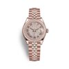 Rolex Datejust 279135RBR – Xuất hiện trong bộ vỏ được làm hoàn toàn từ vàng Everose 18k nguyên khối độc quyền của thương hiệu Rolex, với kích thước 28mm vô cùng phù hợp với các quý cô văn phòng thời thượng và khí chất. Bên cạnh bộ vỏ, phiên bản được trang bị vành bezel khía đặc trưng làm từ vàng Everose 18k có khả năng tương phản tốt tạo điểm nhấn thú vị trên cổ tay của các quý cô, kết hợp núm điều chỉnh có hệ thống chống thấm nước hai tầng Twinlock mang tới khả năng chống nước ở mức 100m cực kỳ ấn tượng.