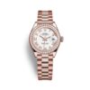 Phiên bản Rolex Datejust 279135RBR-0029 đã được Rolex sử dụng mặt số hồng hoàn thiện bằng phương pháp chải tia đẹp mắt, pha lẫn giữa chất hiện đại và nét cổ điển vốn có của thương hiệu. Trên nền mặt số vẫn là bộ kim chỉ giờ dáng baton với những cọc số kim cương hình ngôi sao, riêng tại vị trí góc 3 giờ vẫn là ô cửa sổ chỉ báo lịch ngày được hỗ trợ qua ống kính cyclops. Cùng với đó, phiên bản sử dụng dây đeo President 3 mối nối cực kỳ sang trọng và có tính thẩm mỹ cao cùng được làm từ chất liệu vàng Everose nguyên khối 18k được hãng ưu ái chỉ dùng trên phiên Datejust dành cho phái đẹp.
