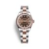 Rolex Datejust 279139RBR – Xuất hiện trong bộ vỏ được làm hoàn toàn từ vàng trắng 18k nguyên khối của thương hiệu Rolex, với kích thước 28mm vô cùng phù hợp với các quý cô văn phòng thời thượng và khí chất. Bên cạnh bộ vỏ, phiên bản được trang bị vành bezel làm từ vàng trắng 18k được phủ kín bằng những viên kim cương tạo điểm nhấn thú vị trên cổ tay của các quý cô, kết hợp núm điều chỉnh có hệ thống chống thấm nước hai tầng Twinlock mang tới khả năng chống nước ở mức 100m cực kỳ ấn tượng.
