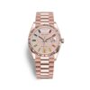 Phiên bản Rolex Rolex Day-Date 128238-0026 đã được Rolex sử dụng mặt số champagne hoàn thiện tinh tế bằng phương pháp chải tia đẹp mắt, pha lẫn giữa chất hiện đại và nét cổ điển vốn có của thương hiệu. Trên nền mặt số vẫn là bộ kim chỉ giờ dáng baton với những cọc số kim cương, riêng tại vị trí góc 3 giờ vẫn là ô cửa sổ chỉ báo lịch ngày được hỗ trợ qua ống kính cyclops. Cùng với đó, phiên bản sử dụng dây đeo President 3 mối nối cực kỳ sang trọng và có tính thẩm mỹ cao cùng được làm từ chất liệu vàng vàng nguyên khối 18k.